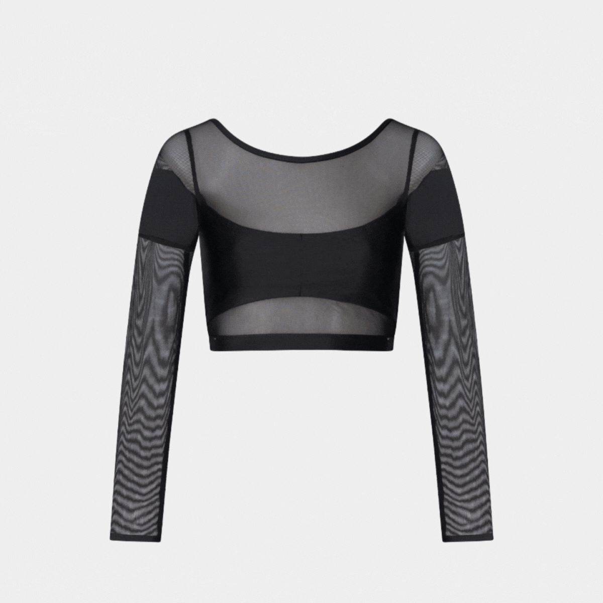 The Agnes Long Sleeve Top has been a long time coming. A piece I knew needed to exist in the collection. Designed for the Second Skin Collection, it feels elegant and sexy with curved panelling, sheer mesh, and a subtle underbust cutout. All while staying effortless to pole dance in. The open back and boat neckline keep it sleek, letting your movement take center stage.