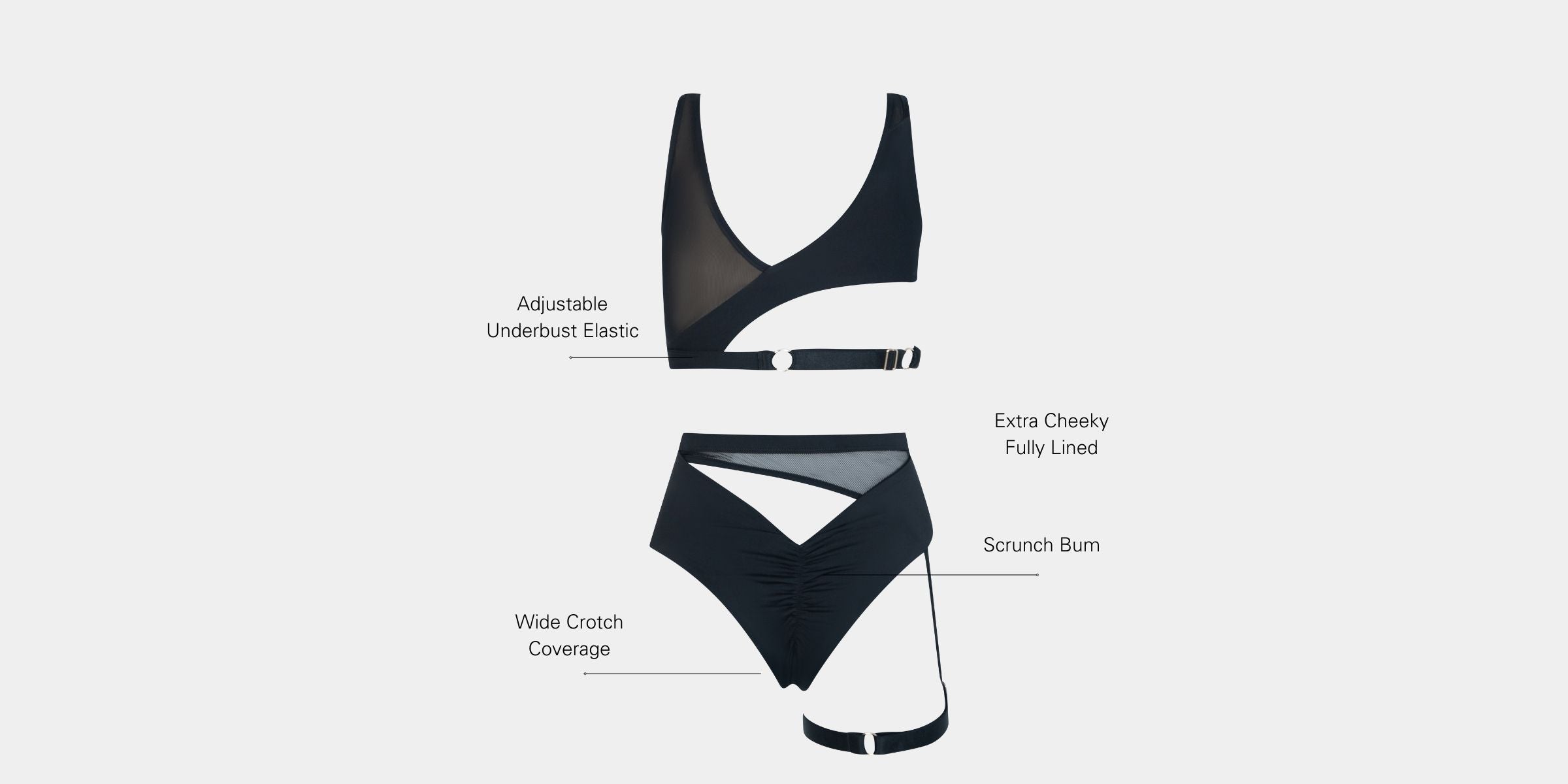 - Cheeky/medium coverage cut (yes, underwear fits underneath!)