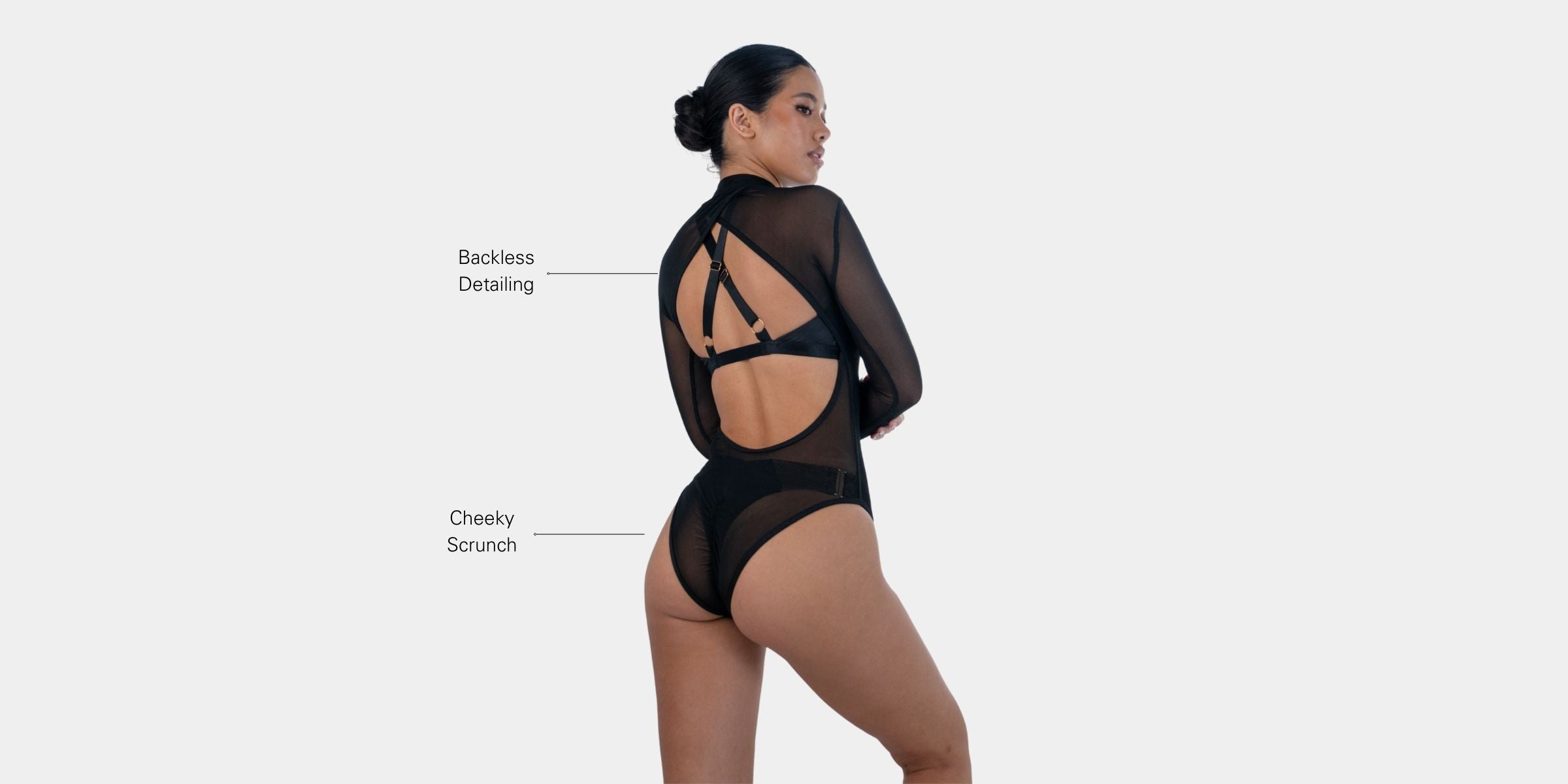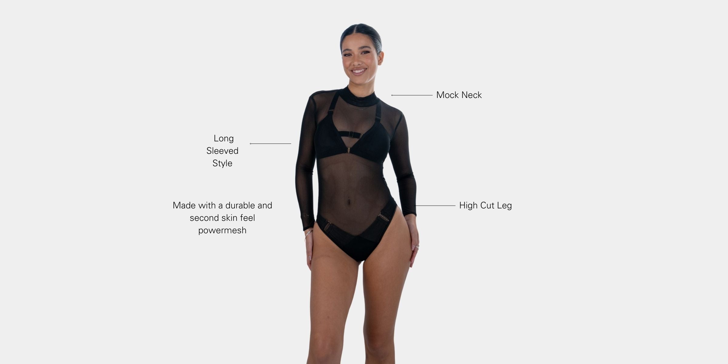 Magnus Long Sleeve Mesh Mock Neck Bodysuit - Black