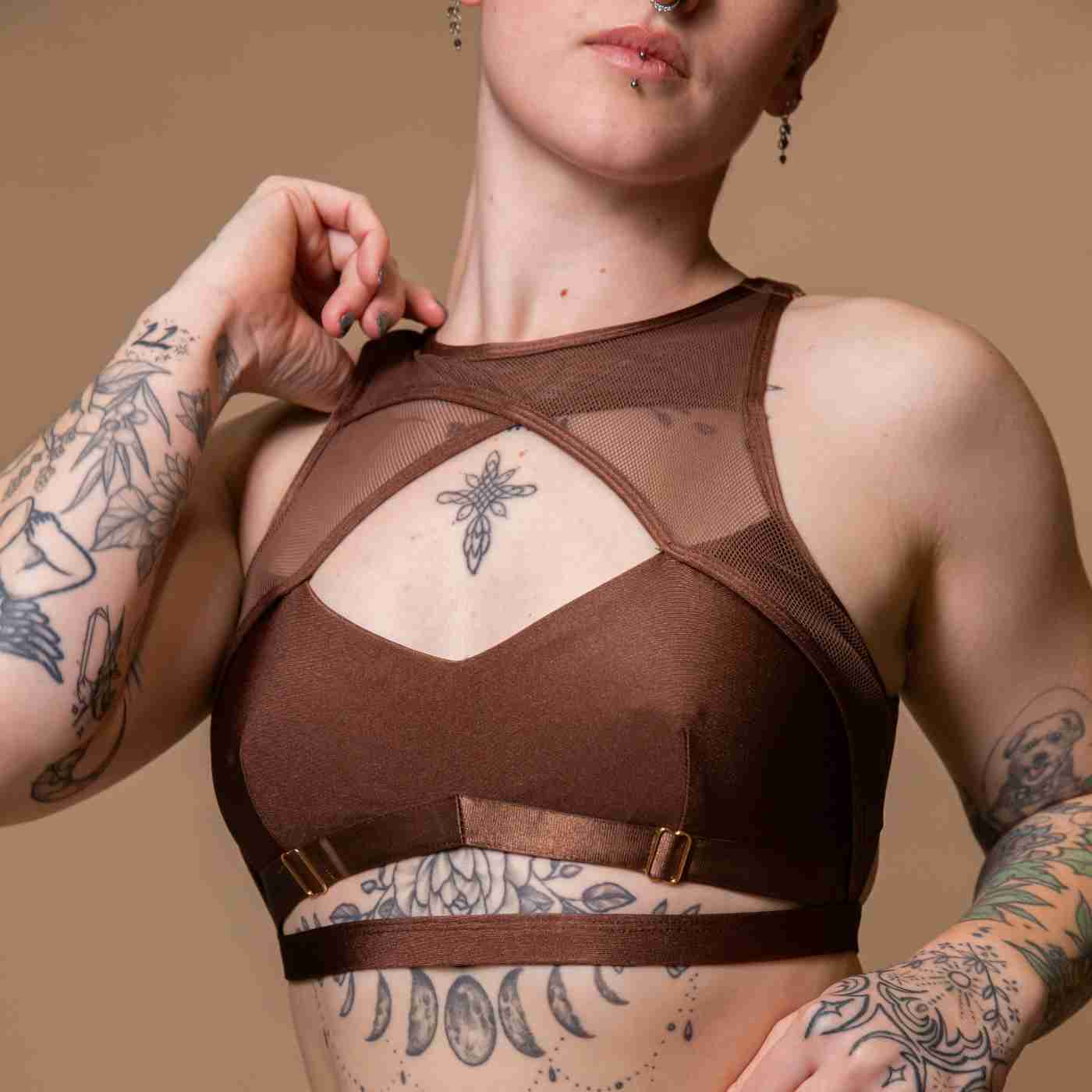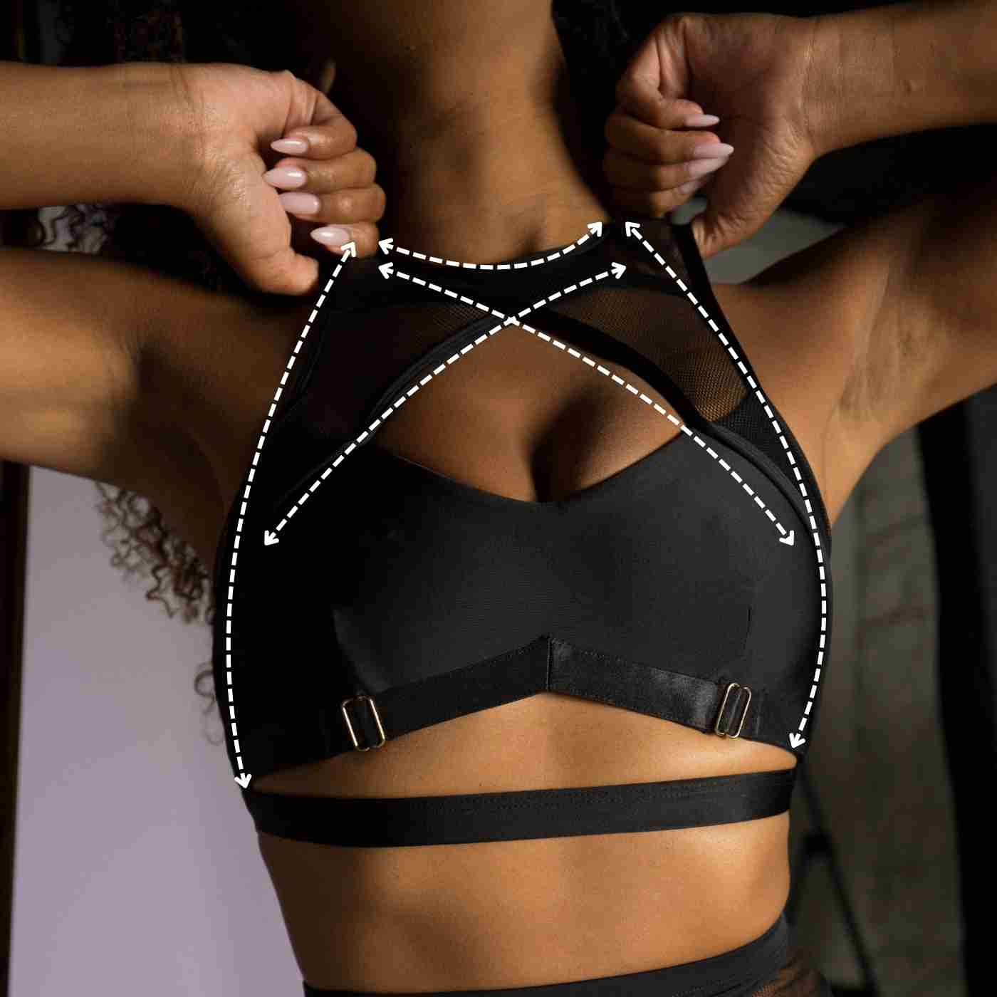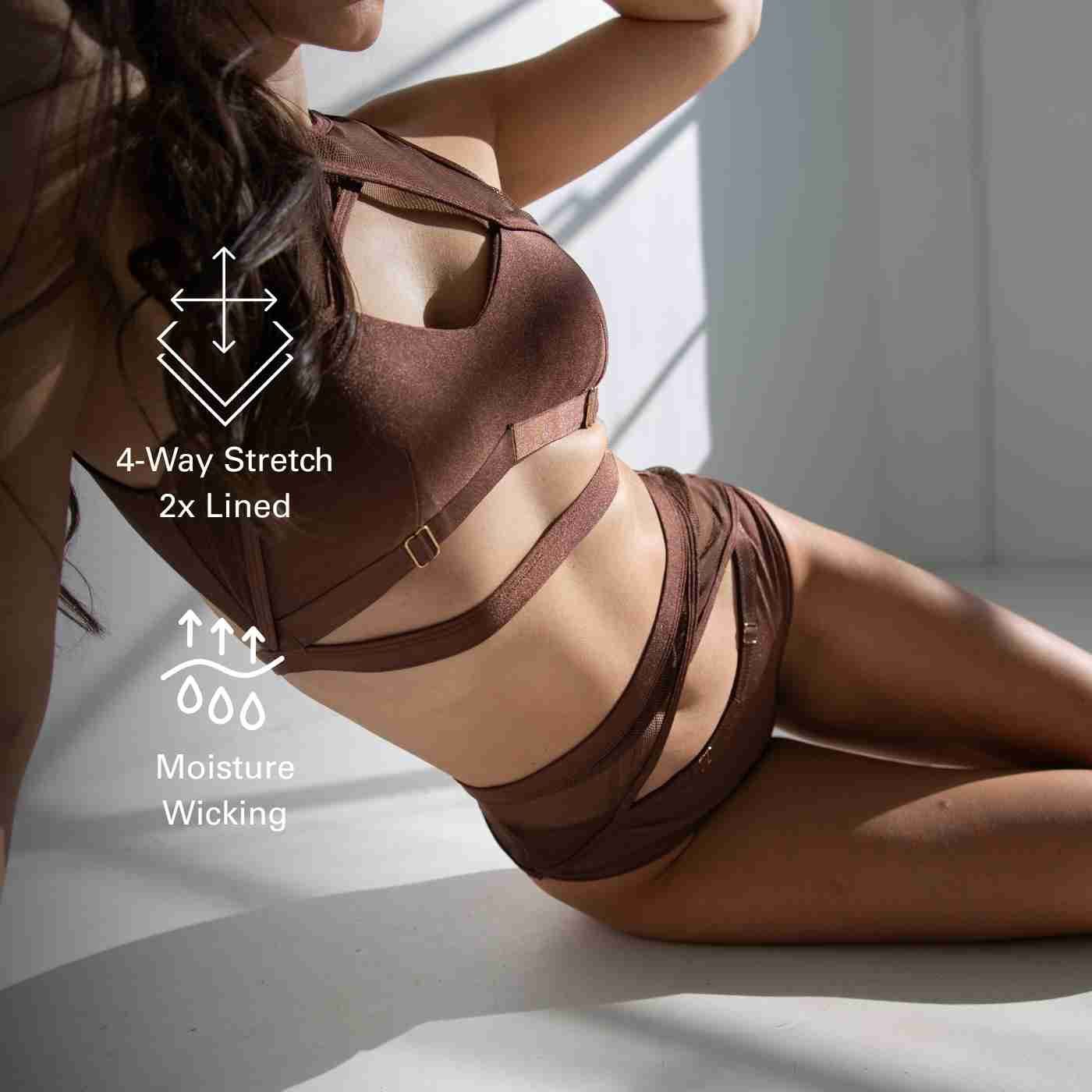Enjoy the support of a high-neck fit, thanks to the crossover mesh detailing that feels sleek, not bulky.